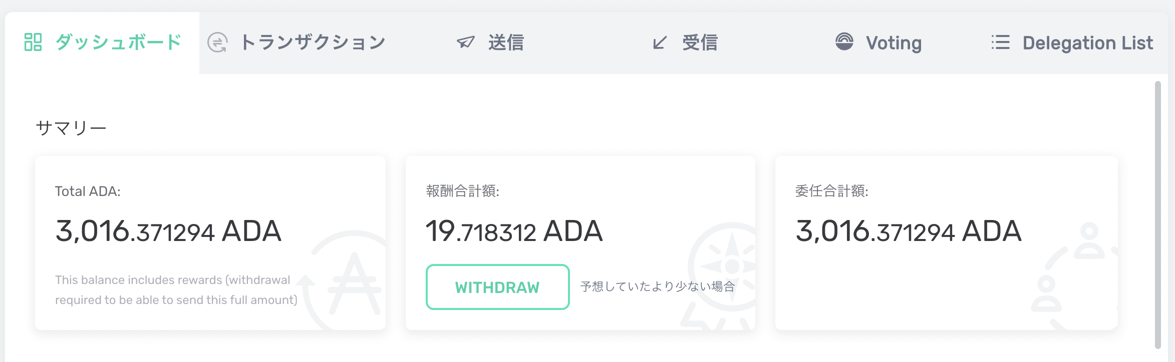 令和4年 ADA ステーキング報酬時の価格今年35回目の令和4年6月20日のステーキング報酬獲得時のADA (エイダ)コインの価格は下記のようになります。 令和4年6月20日のADA (エイダ)コインの価格 @Binance 令和4年6月20日のステーキング報酬...