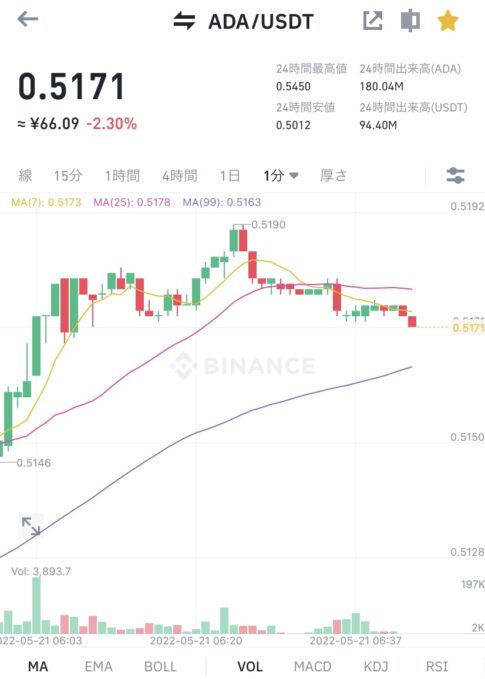 令和4年 ADA ステーキング報酬時の価格今年29回目の令和4年5月21日のステーキング報酬獲得時のADA (エイダ)コインの価格は下記のようになります。 令和4年5月21日のADA (エイダ)コインの価格 @Binance 令和4年5月21日のステーキング報酬...