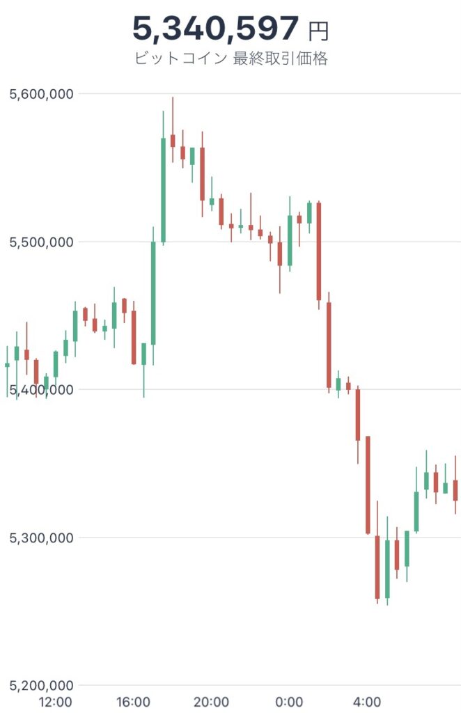 令和4年1月1日のビットコイン@ビットフライヤーの価格は、5,340,597円となります。
