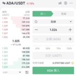 ビットコインに対して、ADA (エイダ)コインは2,749サトシです。ビットコイン建は、先週と比べて50サトシ程下がっています。